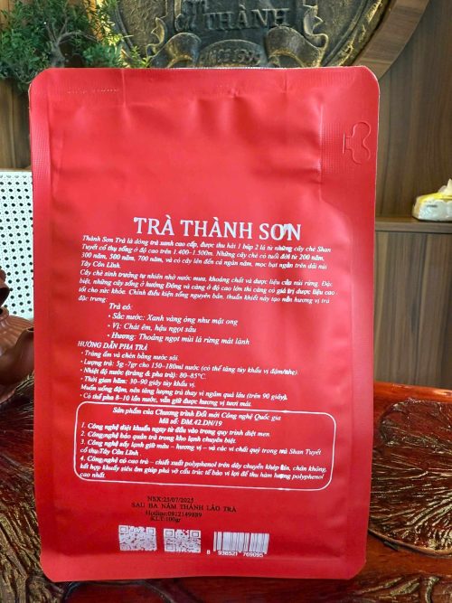 Trà Thành Sơn được đóng hộp 200 gram, bên trong hộp là lớp túi bạc giúp trà giữ được phẩm cấp bền lâu cho người sử dụng.
